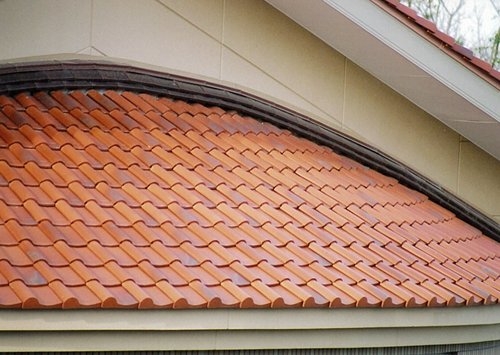 今までは瓦1枚1枚をカットしなければできなかった「陶器瓦を使ったR曲線屋根」が、自由自在に施工可能となりました。本葺よりも低コストで、台形・円形・外R曲線・内R曲線・アーチ状などの曲面が自在に実現できます。